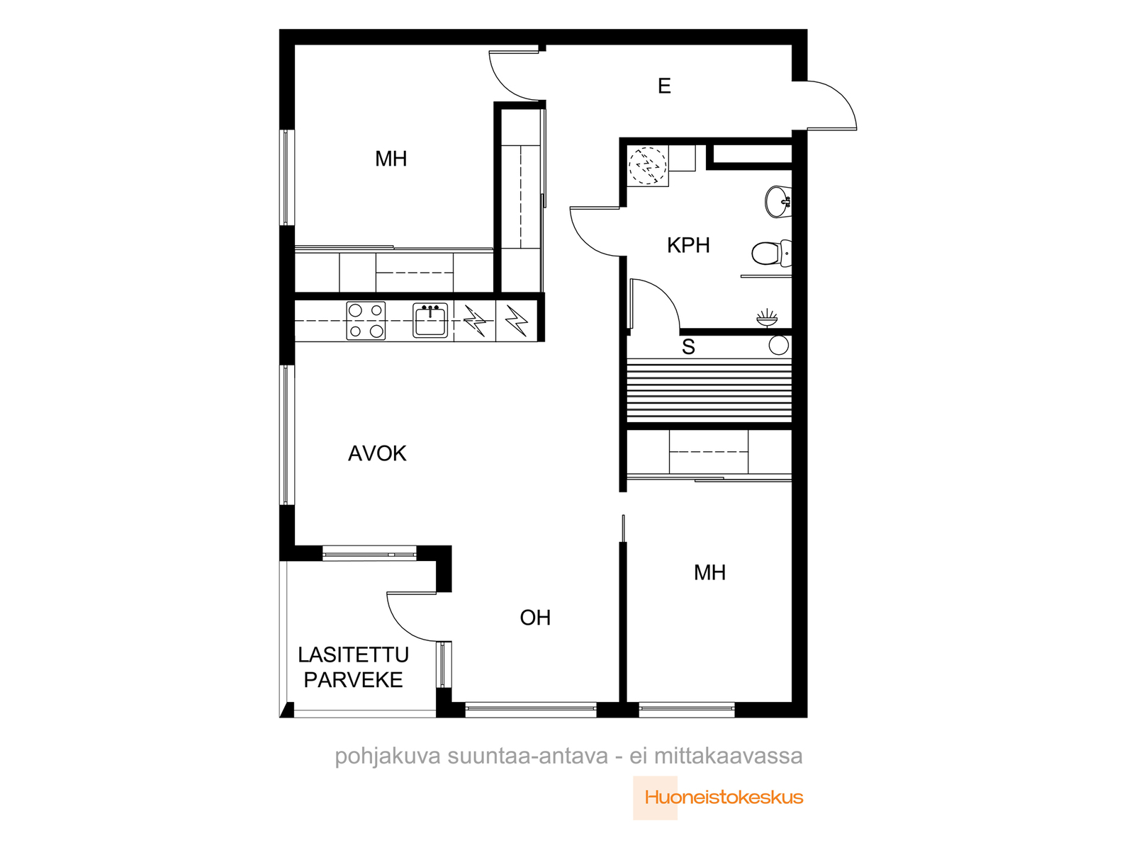 - Lisätietoja sisältyvistä varusteista: huoneistokohtainen ilmanvaihtokone, kaapistot, kiinteät valaisimet, sälekaihtimet/rullaverhot