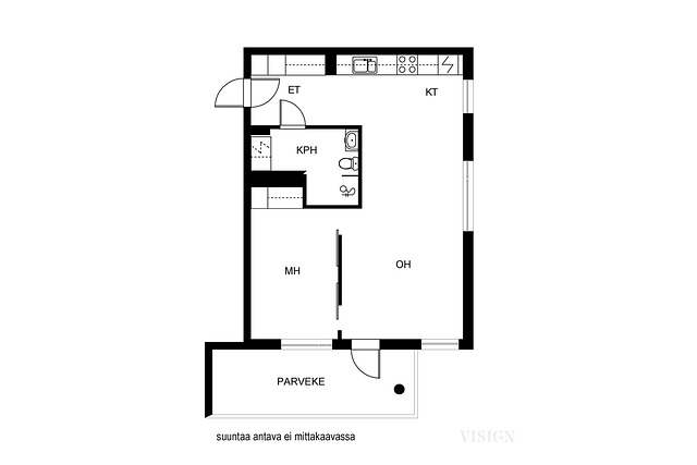 Tämä koti hurmaa valollaan, sillä kulmahuoneistossa ikkunat avautuvat kahteen suuntaan ja päästävät luonnonvalon kauniisti sisään. Huolella pidetty ja hyväkuntoinen asunto tarjoaa toimivan pohjaratkaisun, jossa arjen toiminnot nivoutuvat luontevasti yhteen. Keittiö ja olohuone muodostavat yhtenäisen, avaran tilan, johon sopii mukavasti sekä ruokapöytä että sohva-alue. Makuuhuone jatkaa selkeää linjaa tarjoten tilaa parisängylle ja työpisteelle, ja kylpyhuone on suunniteltu käytännölliseksi mahdollistaen myös pesutornin sijoittamisen. Olohuoneelta aukeava suuri lasitettu parveke toimii lisäoleskelutilana ja avaa näkymät etelään ja itään.