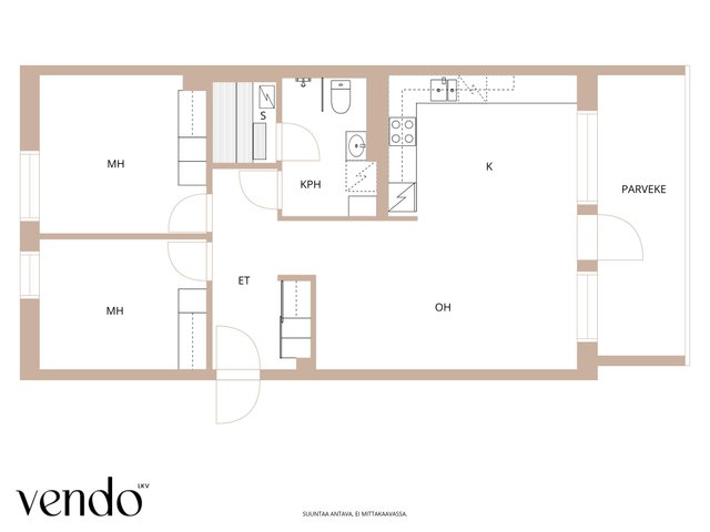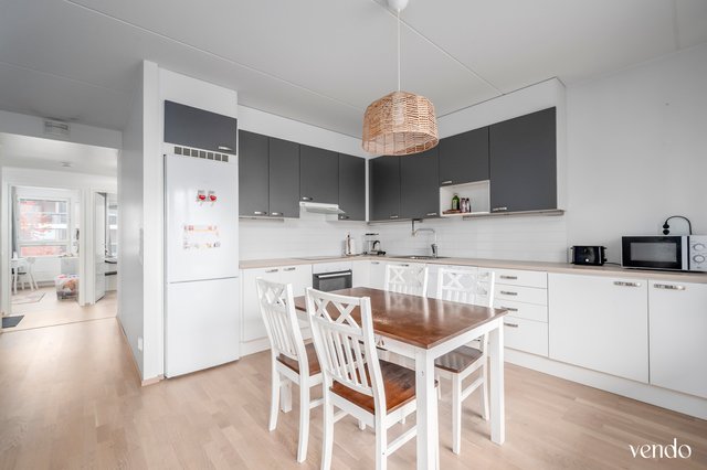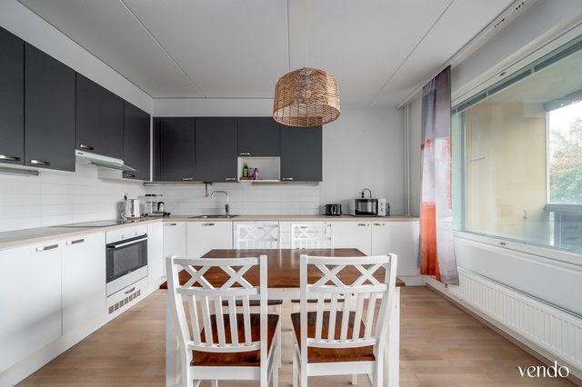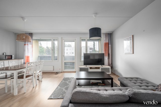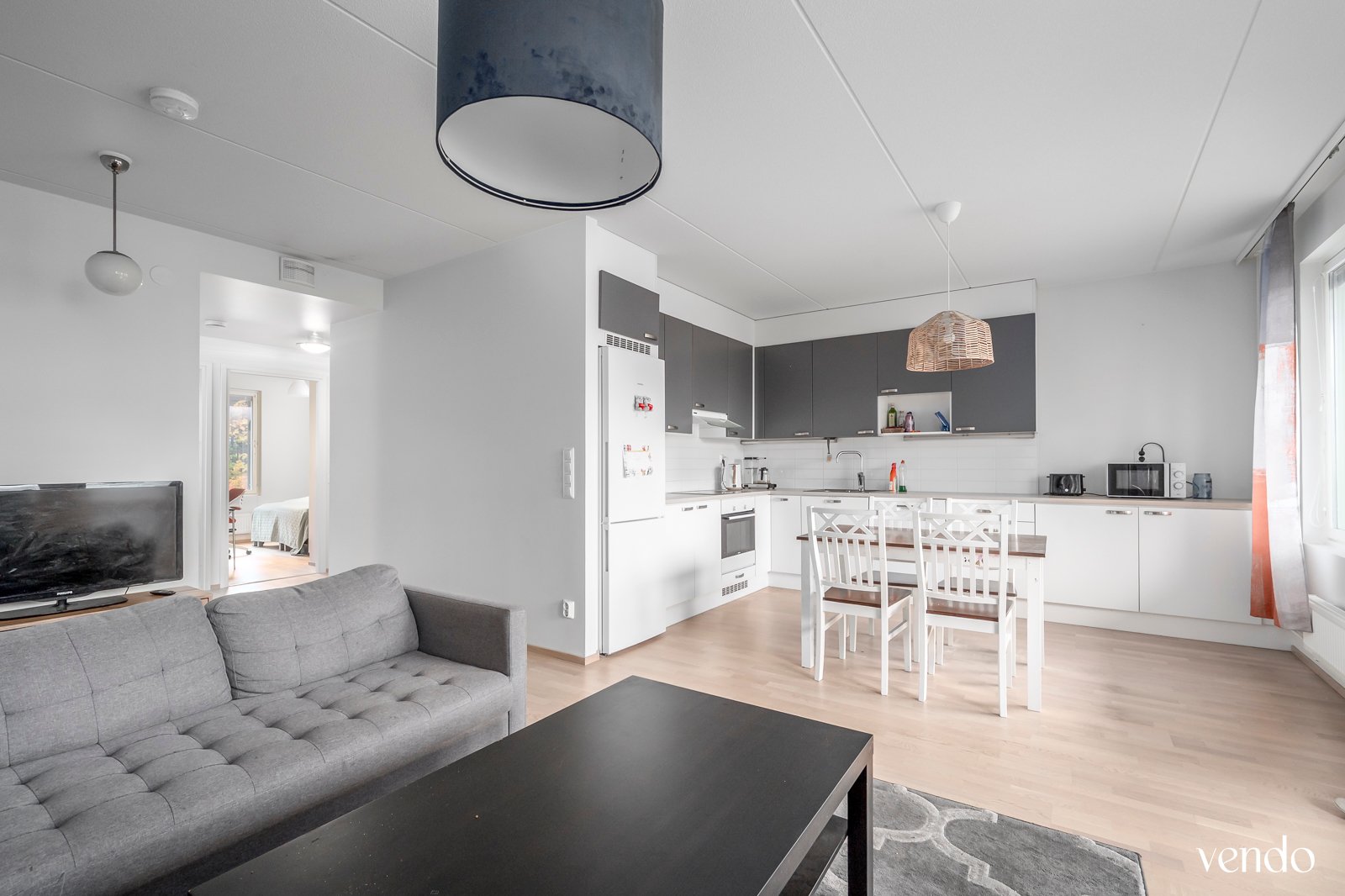 Asunnossa on moderni avokeittiö, jossa todella paljon säilytys- ja laskutilaa. Olohuoneesta on käynti lasitetulle parvekkeelle, joka tarjoaa lisätilaa rentoutumiseen. Kaksi tilavaa makuuhuonetta ja oma sauna tuovat asuntoon arjen mukavuutta.