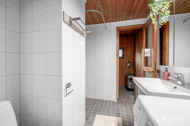 - WC-istuin, suihku, pesukoneliitäntä, peilikaappi, pesuallas, allaskaappi, ja bidee-suihku