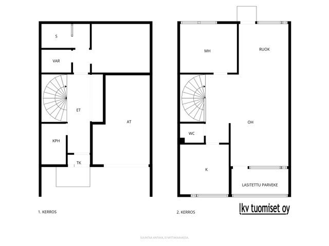 oh, k, mh, wc, kph, s, pesuhuone, vh, askartelutila, lämmin autotalli, lasitettu parveke