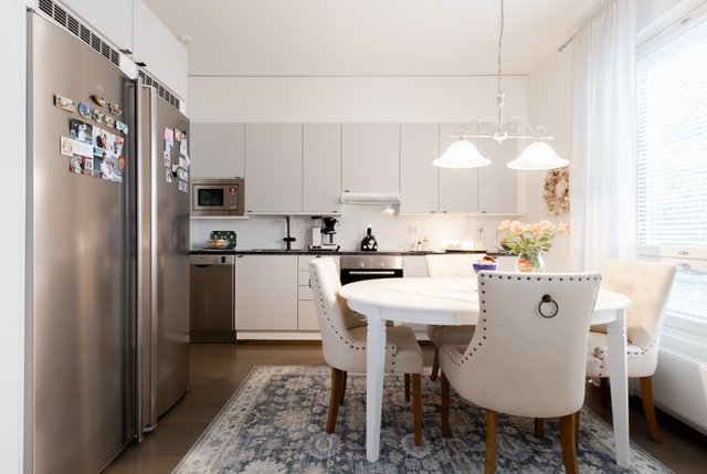 - Jääkaappi, erillinen pakastin, astianpesukone, liesi, liesituuletin, ja mikroaaltouuni