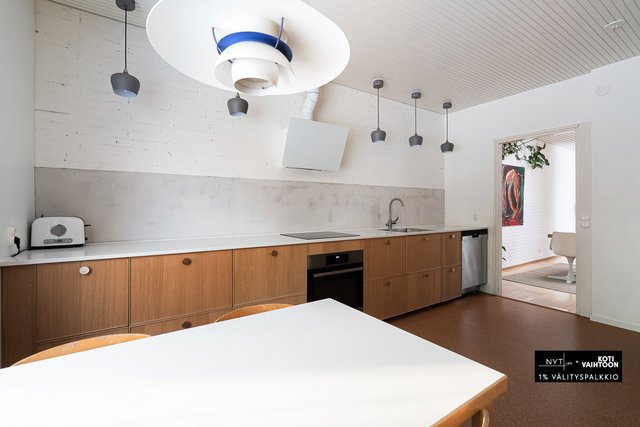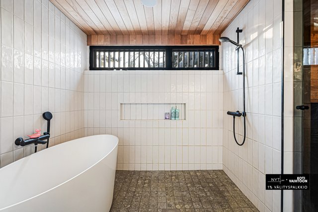 Keittiö on uusittu 2020. Tasot ovat kestävää kvartsikomposiittia ja keittiöstä löytyy nykyaikaisten kodinkoneiden lisäksi kattavasti säilytystilaa ja aamiaiskaappi. Päärakennuksen kylpyhuone on vastaavasti uusittu 2020. Kaunis laatoitus ja sadesuihku luovat viihtyisää tunnelmaa tilaan. Asunnossa neljä makuuhuonetta joista jokainen on kooltaan käytännöllinen. Huoneissa on kaapistot tai tilavaraus niille.