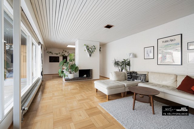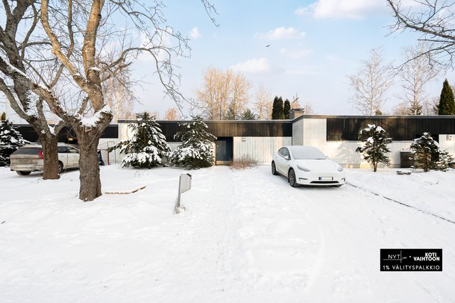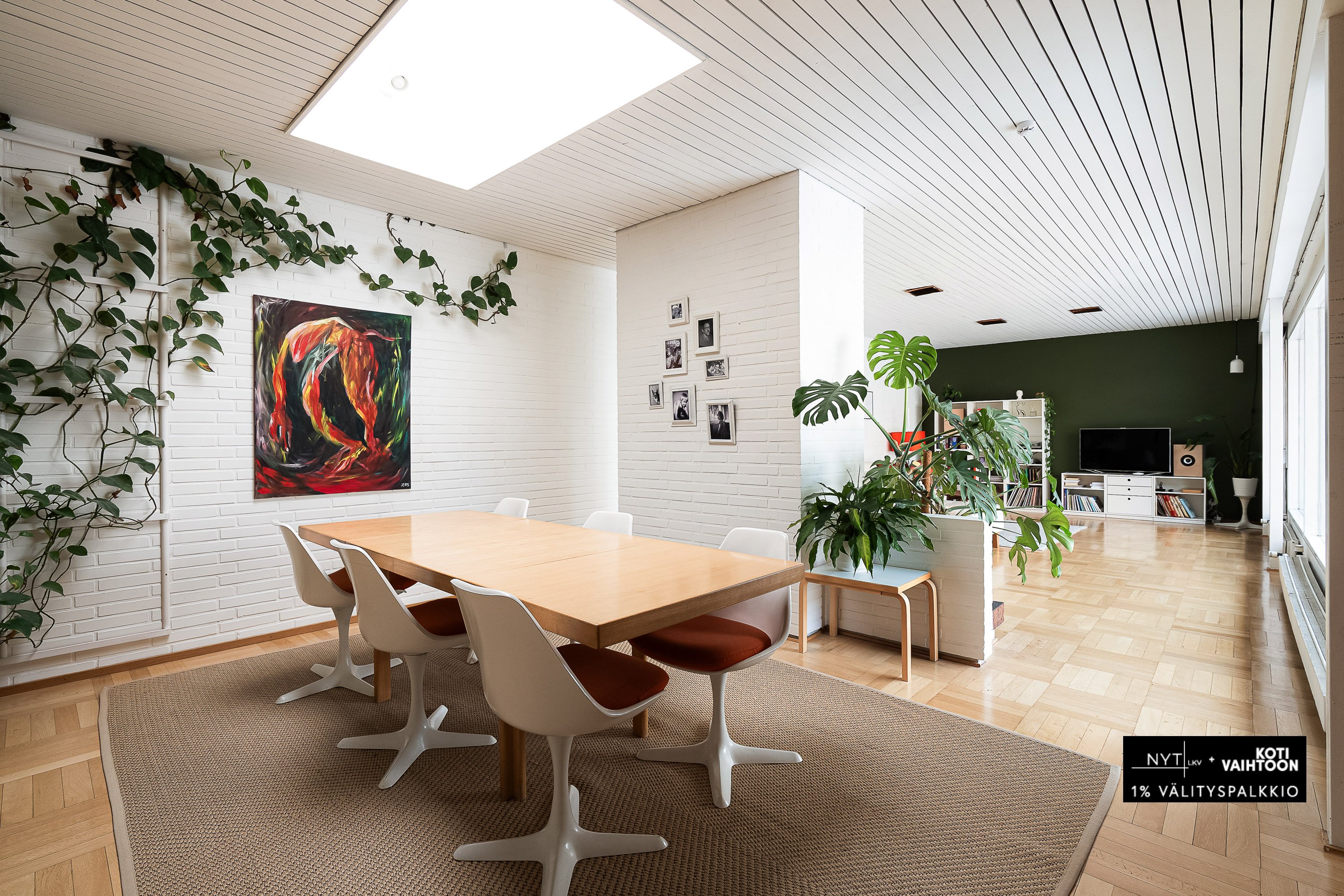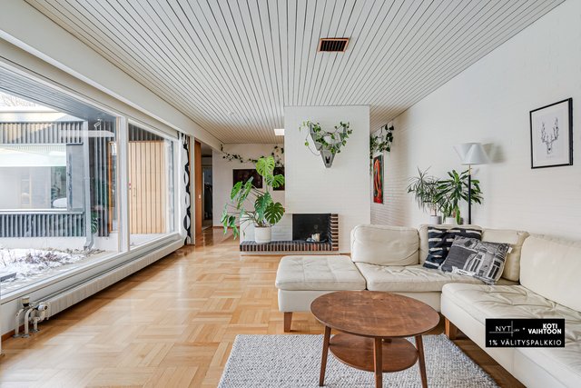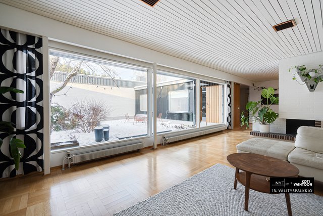 Upea arkkitehtoninen taidonnäyte kuuskytluvulta - muuttovalmis, neljän, peräti viiden makuuhuoneen koti yhdessä tasossa!