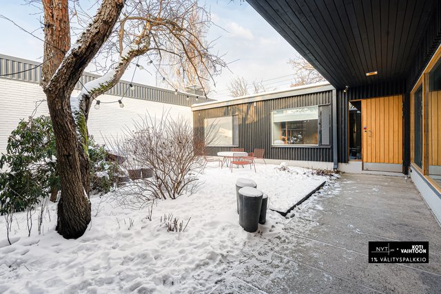 Tämän taloyhtiön asunnot sisältävät useita uniikkeja yksityiskohtia ja yksi niistä, kenties kaikkein paras on asunnon atriumpiha. Katseilta suojassa oleva piha-alue on viihtyisä ja sieltä löytyy muun muassa terassia ja upeasti keväisin kukkiva kirsikkapuu.