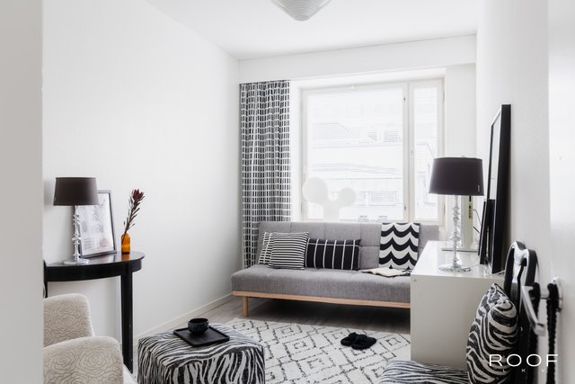 - Erittäin tilava olohuone, josta ikkunat kahteen suuntaan. Helppo kalustaa halutessaan "eri tiloja". Parvekkeelle käynti olohuoneesta, ja parveke on ilta-auringon eli lännen suuntaan.