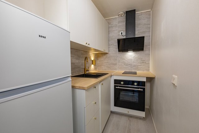 Tämä valoisa asunto on kooltaan 33 m² ja se sijaitsee talon toisessa kerroksessa. Asunnon hyväkuntoinen sisustus, kuten laminaattilattiat ja maalatut seinät, luovat modernin ja viihtyisän tunnelman. Keittiössä on käytännölliset kodinkoneet, kuten amerikkalainen jääkaappi-pakastin ja induktioliesi. Kylpyhuone on laatoitettu ja sieltä löytyy liitäntä pesukoneelle.