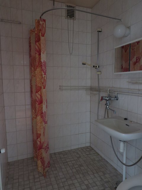 - WC-istuin, suihku, pesuallas, bidee-suihku, ja peilikaappi