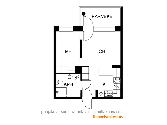 Tilava keittiö, olohuone ja makuuhuone tekevät tästä asunnosta erinomaisen valinnan niin yksinasujalle kuin pariskunnalle.