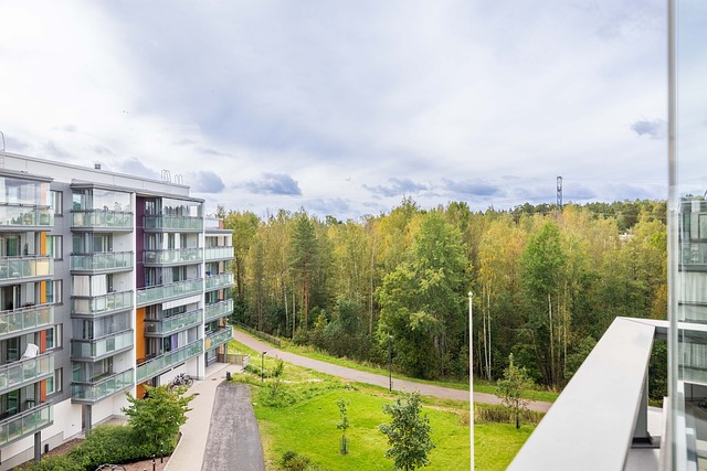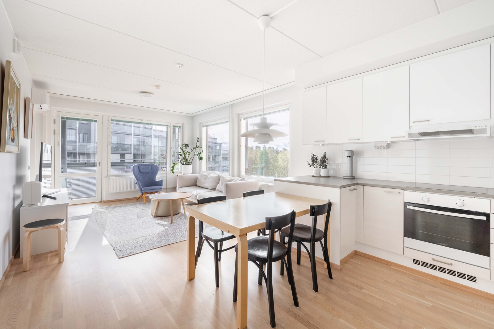 Viidennen kerroksen koti hurmaa avaruudellaan ja runsaalla luonnonvalolla.