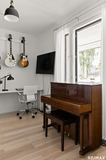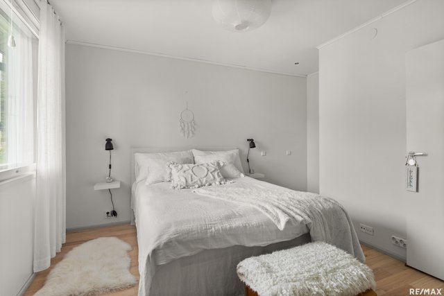 - Kolme makuuhuonetta eripuolella asuntoa tarjoaa mahdollisuuksia personointiin niin työhuoneelle tai lastenhuoneelle.