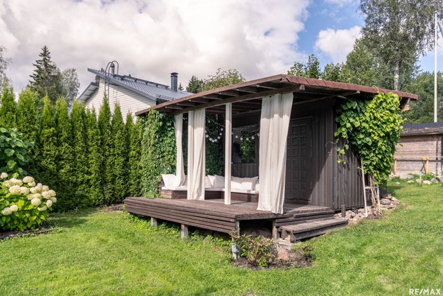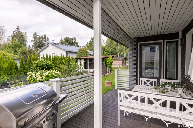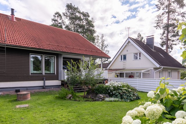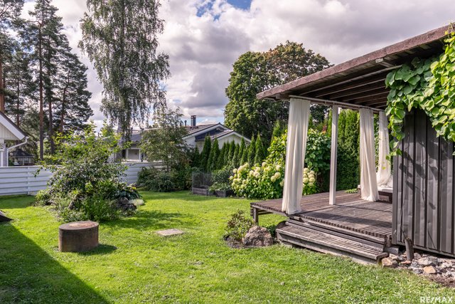 Tämä vuonna 2010 valmistunut 120 m² erillistalo Asunto Oy Espoon Mäntypihassa on suunniteltu arjen sujuvuutta ja luonnonläheistä asumista arvostavalle perheelle. Talossa on kolme hyvänkokoista makuuhuonetta sekä avara, moniulotteinen olohuone, jossa tunnelmaa luova kiertoilmatakka ja suora käynti etelään avautuvalle terassille. Toimivassa ja tilavassa keittiössä hyvin säilytys- sekä laskutilaa ja vuonna 2019 uusitut kodinkoneet, tekevät arjen ruokailusta ja ruoanlaitosta vaivatonta. Kodinhoitohuoneesta on käynti tunnelmalliseen kylpyhuoneeseen ja saunaan; kodinhoitohuoneessa on myös oma wc, ja huoneesta on kulku terassille kuraeteisen kautta. Etelään avautuvalle terassille mahtuu helposti ruokaryhmä ja grilli, ja sieltä avautuu näkymä vehreälle, istutuksin ja viiniköynnöksin varustetulle takapihalle. Pihalta löytyvä erillinen kylmä varastotila tarjoaa kätevää säilytystilaa puutarhavälineille ja pihakalusteille. Taloa täydentää ulkoportaita pitkin saavutettava, tilava käyttöullakko toisessa kerroksessa, jossa on oma wc ja siksi erinomainen ratkaisu harraste-, etätyö- tai vierastilakäyttöön. Tämä koti sopii erinomaisesti perheelle, joka haluaa yhdistää kodikkaan tunnelman, toimivat arjen ratkaisut ja luonnonläheisen pihapiirin.