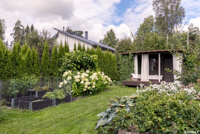 - Vehreältä hyvän kokoiselta takapihalta löytyy erillinen kylmä varastotila sekä kauniit istutukset viiniköynnöksineen!