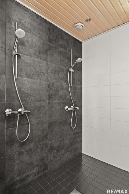 - Ikkunallisessa tunnelmallisessa kylpyhuoneessa kaksi suihkua ja sauna.
