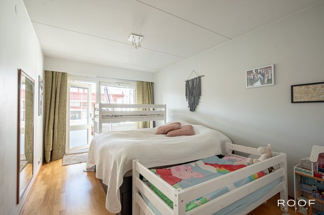 Kodissa on yhteensä kolme tilavaa ja valoisaa makuuhuonetta. Yksi makuuhuoneista sijaitsee yläkerrassa ja kaksi alakerrassa. Kaikissa huoneissa on hyvin säilytystilaa kaapistoissa.