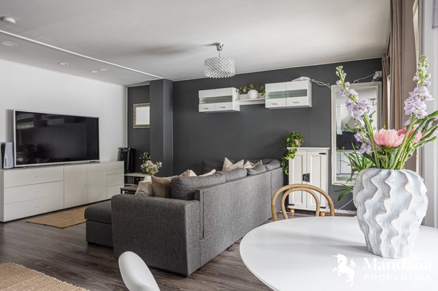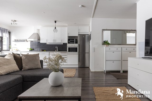Ihastuttava rivitalon päätyhuoneisto Simonkylässä tarjoaa viihtyisää asumista avaran olohuoneen ja avokeittiön yhdistelmällä, josta on käynti suoraan takapihalle. Rentouttavista hetkistä voi nauttia omassa saunassa.