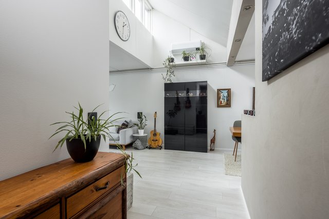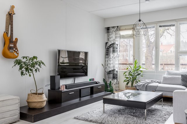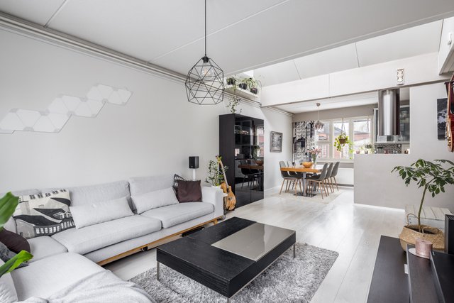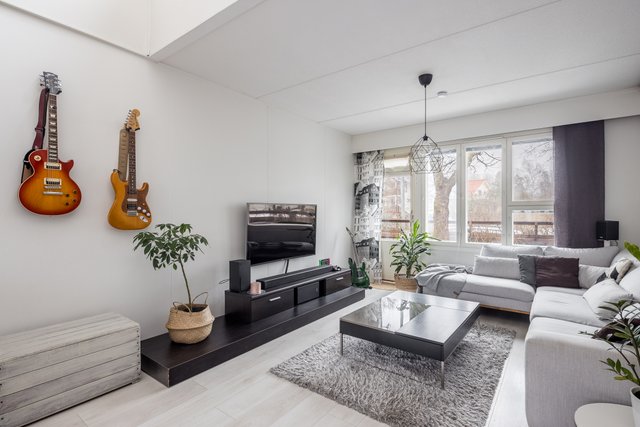 Asunnon keskiössä on avara ja valoisa olohuone-ruokailutila, mikä luo toimivuutta ja viihtyisyyttä arjen askareisiin ja yhteisiin hetkiin. Tilan ja valon määrää korostaa kattoikkuna ja porrastettu huonekorkeus. Olohuoneesta on käynti terassille, joka tarjoaa lisätilaa ja viihtyisän paikan oleskeluun.