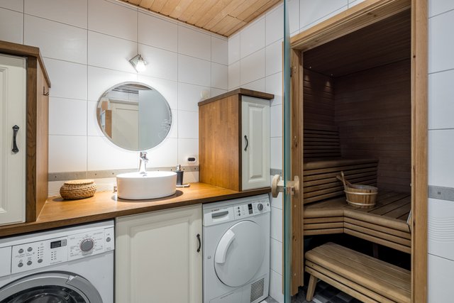 2020 Asunnon 19 kylpyhuone ja sauna, korjattu katon vuotokohtia