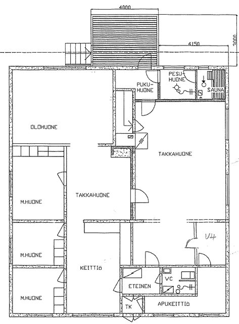 Pesu- ja saunatilat sekä isompi takkahuone 2003.