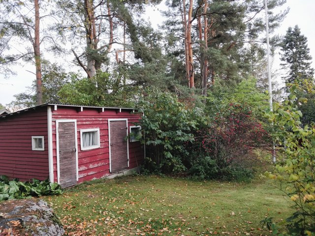 - Vanha pihasauna sekä puuvaja.