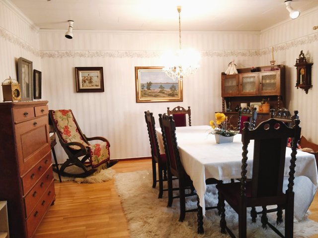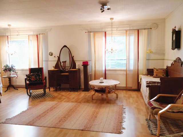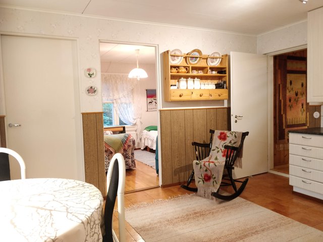 Talossa on tällä hetkellä kolme makuuhuonetta, mutta tarvittaessa olohuoneesta saisi mahtavan päämakuuhuoneen. Talossa on kaksi takkahuonetta, joista isompi on remontoitu vuonna 2003 ja varustettu takalla ja leivinuunilla. Takkahuonetilat toimivat loistavasti oleskelutiloina isommallekin porukalle. Keittiössä on myös mukavasti tilaa. Kaapistot on uusittu 2000-luvulla ja ovat edelleen siistikuntoiset.