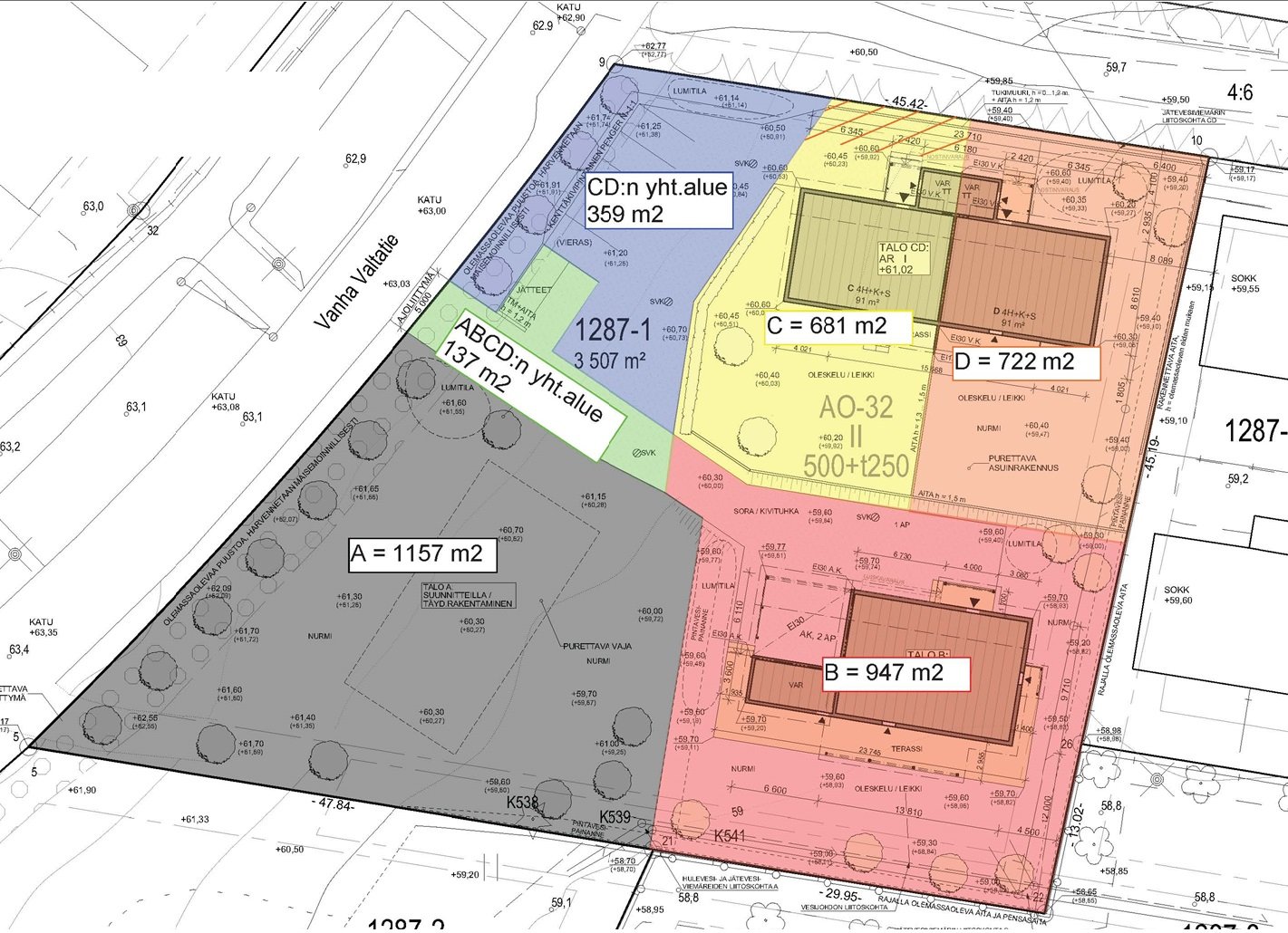 - Myytävän hallinnanjakoalueen koko n. 1157 m². Maaperätutkimus ja perustamistapalausunto on tehty yhdessä 3 alueen tontin kesken. Tontilla ei ole purettavia rakennuksia. Vanha Valtatie 55 A:lla on 33 % rakennusoikeudesta. Vesiliittymä tontin rajalla, ja tontilla on jo kaksi rakennusta (1okt ja 1paritalo), kukin rakennus on sitten itse hoitanut liittymät liittymäpisteestä omalle rakennukselle.
