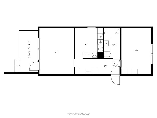 - Jenkkikaappi, liesi, astianpesukone, liesituuletin, ja kiinteät valaisimet