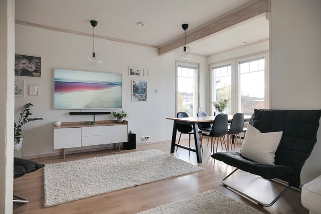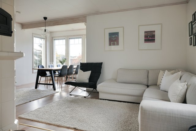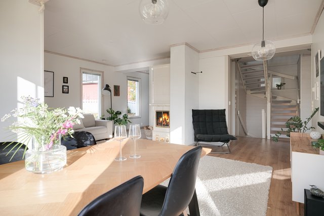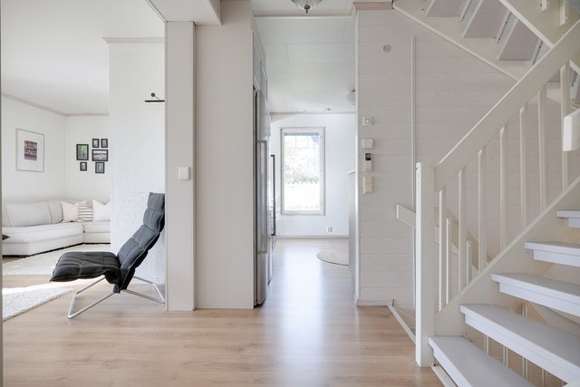Isot ikkunat tekee kodista näyttävän ja avaran kokonaisuuden, mikä näkyy heti sisään astuessasi.