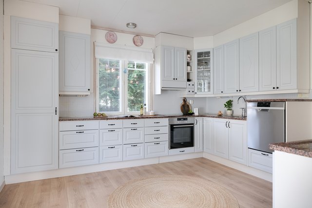 - Jääkaappi, erillinen pakastin, liesi, erillisuuni, astianpesukone, ja liesituuletin (suodattimella)