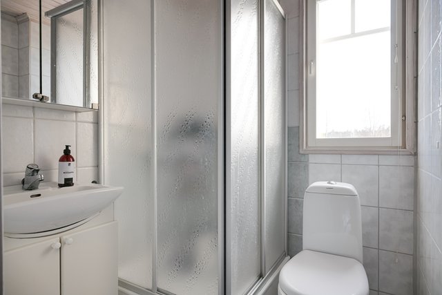 - Kellarikerroksen wc, mikä on pukuhuoneen yhteydessä remontoitu 4/2025= mikrosementti lattia, seinässä puolipaneeli + tapetti. Vesikalusteet (pönttö, allaskaapisto + hana) uusittu v. 2025. Keskimmäisen kerroksen wc remontoitu 4/2025= mikrosementti lattia, seinissä mikrosementti, tapetti ja akustiikka puolipaneeli. Vesikalusteet (pönttö, allaskaapisto + hana) uusittu v. 2025 Yläkerran wc= patterilämmitys, laatta lattia, seinissä kaakeli, alkuperäiset kalusteet sekä suihkukaappi.