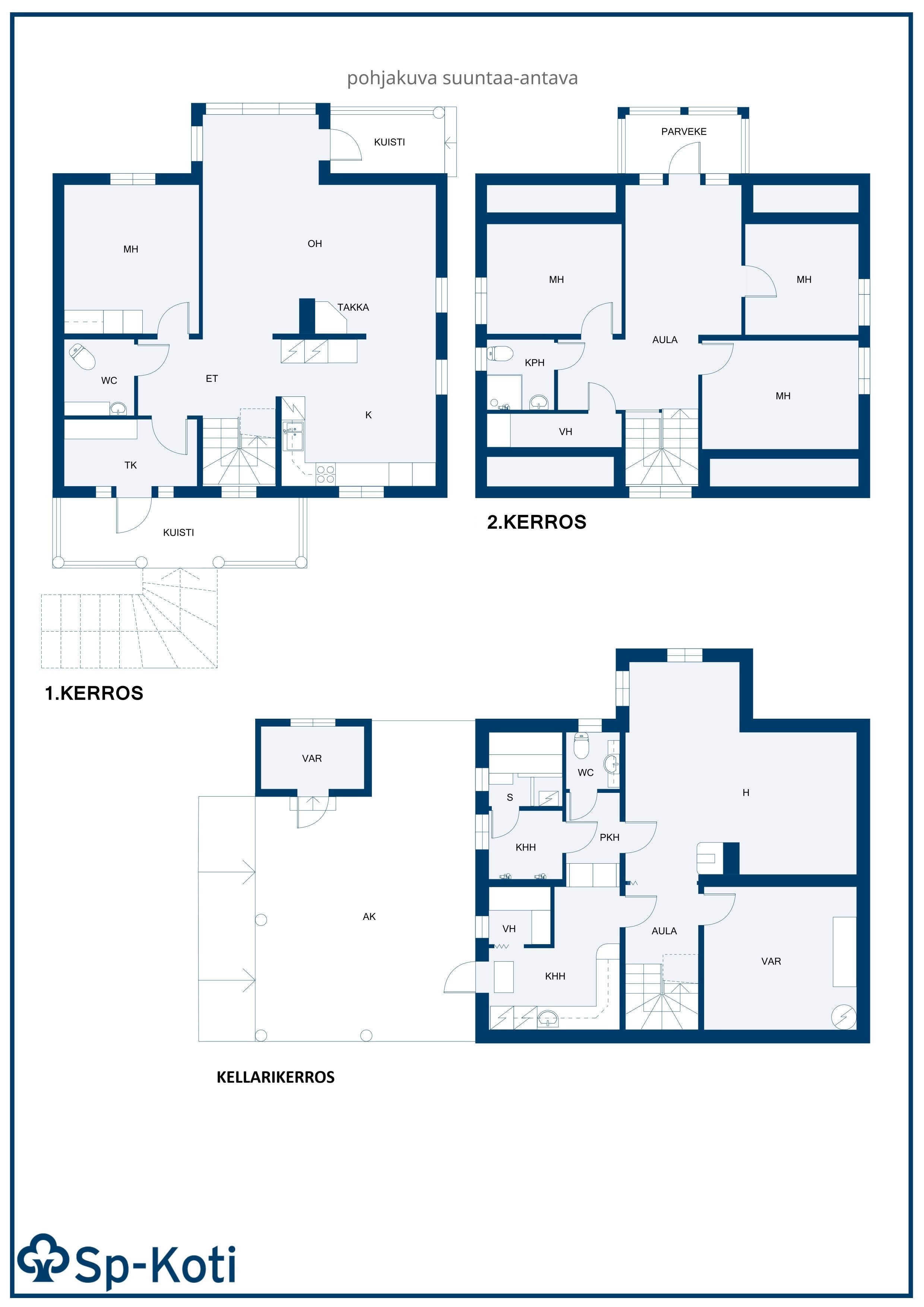 - Eteisen lattia on laminaattia, vesikiertoisella lattialämmityksellä ja seinissä tapetti. Kellarikerroksen harraste-/aulatilasta löytyy varaava takka, laminaattilattia sekä seinissä tapetti. Kellarikerroksen varastohuoneesta löytyy kaapistoja sekä keskuspölyimuri.