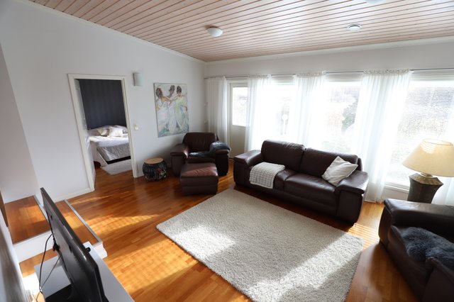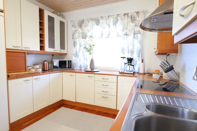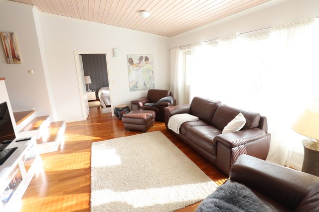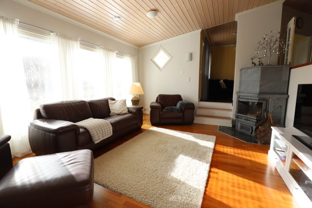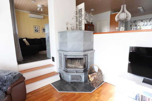 Talon sydän on olohuone, jossa on lämpöä varaava takka, joka luo tunnelmaa ja mukavuutta kylminä talvi-iltoina. Keittiö on varustettu nykyaikaisin kodinkonein ja tarjoaa runsaasti tilaa ruokailuun. Kolme makuuhuonetta tarjoavat rauhalliset puitteet lepoon ja rentoutumiseen.