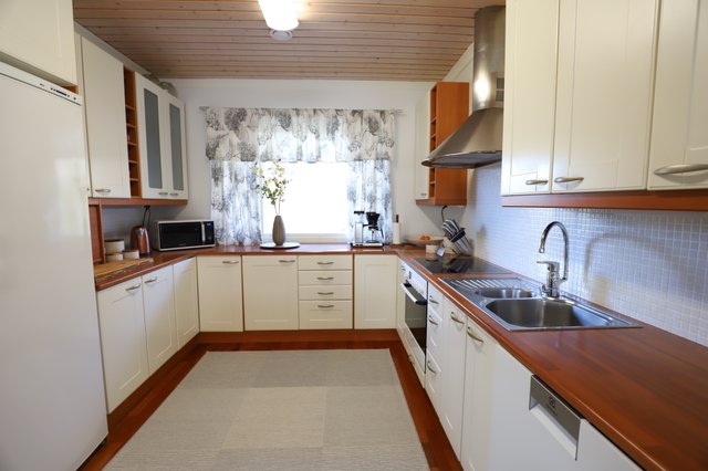 - Jää-viileäkaappi, jääkaappipakastin, erillisuuni, liesi, liesituuletin, ja astianpesukone