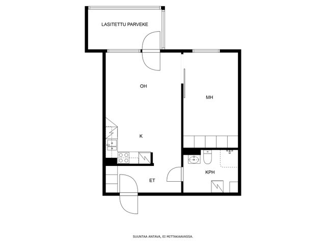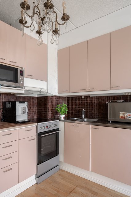 - VARUSTUS: Liesituuletin Hana Kaapisto Allas Jääkaappipakastin Sähköliesi SEINÄT: Maali, laatta LATTIA: Parketti