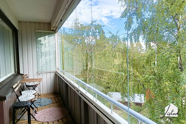 Asunnon keittiö on hyvin varusteltu, ja olohuoneesta on käynti koko huoneiston levyiselle lasitetulle parvekkeelle, jossa voit nauttia rauhallisista aamuista ja kauniista maisemista. Makuuhuoneen vieressä on tilava vaatehuone, joka tarjoaa runsaasti säilytystilaa kuten eteisen liukuovikaapistot. Valoisa kylpyhuone on remontoitu 2016.