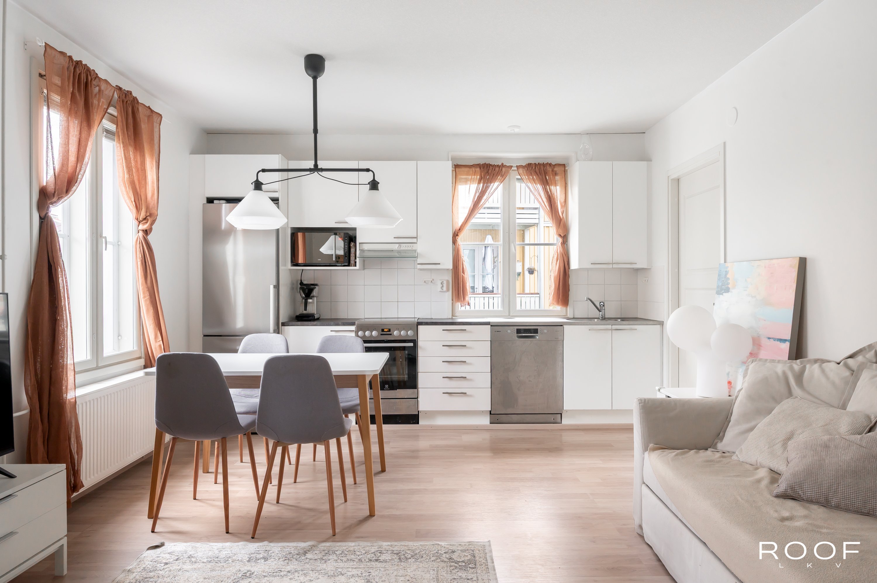 - Liesituuletin, uuni, astianpesukone, ja jääkaappipakastin