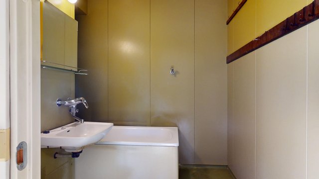 - WC-istuin, suihku, kylpyamme, pesukoneliitäntä, ja pesuallas
