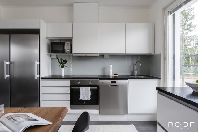 Kolme makuuhuonetta, yhtenäinen keittiö–olohuone sekä hyvät säilytystilat tekevät kodista toimivan ja avaran. Keittiöstä pilkottava merinäköala tuo arkeen ripauksen luksusta ja luonnonläheisyyttä. Kodin siisti yleisilme viimeistelee kokonaisuuden, ja lattiat on uusittu hiljattain. Oma sauna tarjoaa täydellisen paikan rentoutua, ja erillinen wc lisää arjen käytännöllisyyttä.