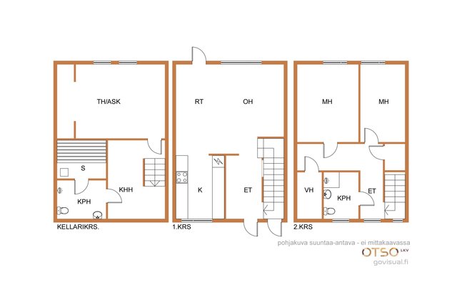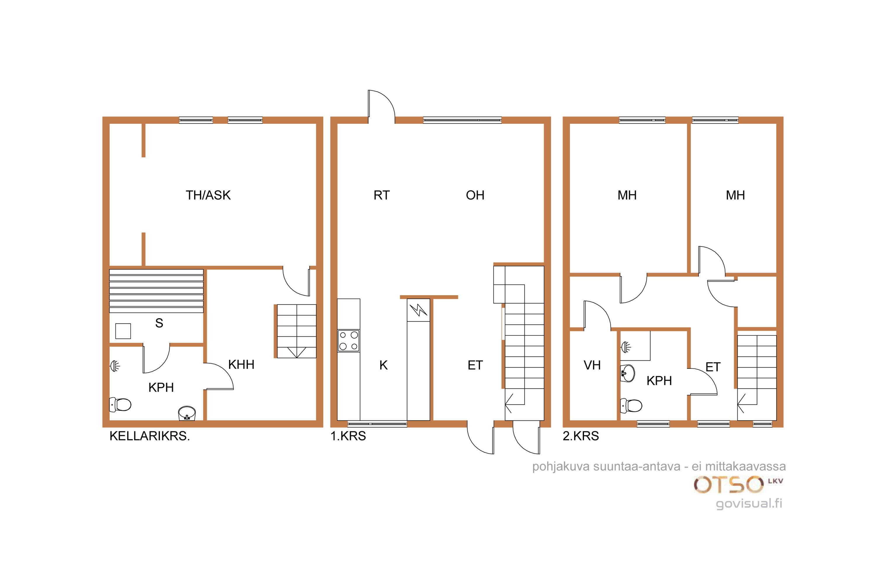 - Kellarikerros (noin 30-35m2) ei ole mukana virallisissa neliöissä.