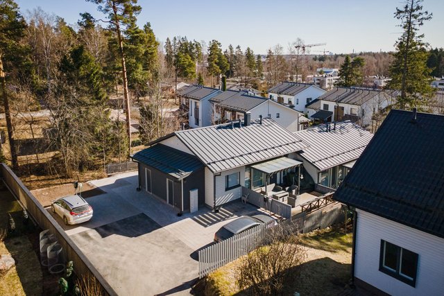 Tämä vuonna 2018 valmistunut paritalo tarjoaa modernin ja viihtyisän kodin Espoon rauhallisella Uusmäen alueella. Yksitasoinen pohjaratkaisu tuo arkeen helppoutta ja avara olohuone yhdistettynä avokeittiöön luo täydellisen tilan yhdessäoloon. Olohuoneessa tunnelmaa lisää kaunis takka. Asunnossa on kaksi makuuhuonetta, tyylikäs kylpyhuone, sauna sekä erillinen wc.