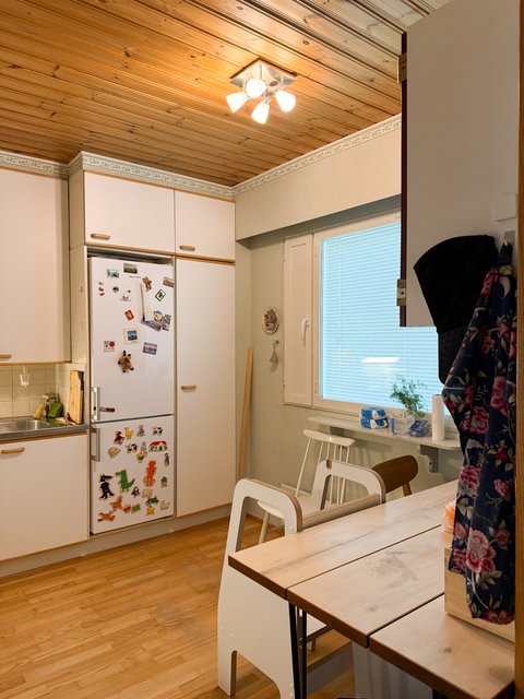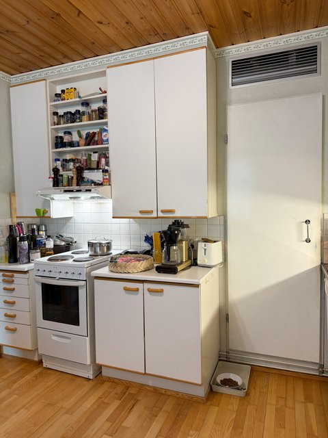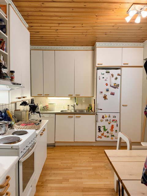 - Liesi, jääkaappipakastin, kylmiö (ei ole ollut kylmäkäytössä), ja astianpesukone