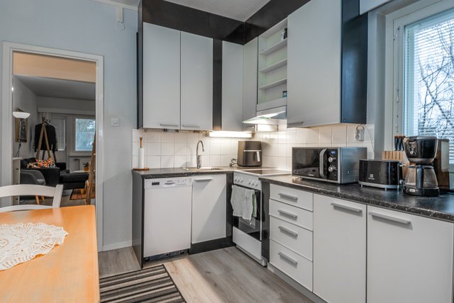 - Jääkaappipakastin, liesi, liesituuletin, ja astianpesukone