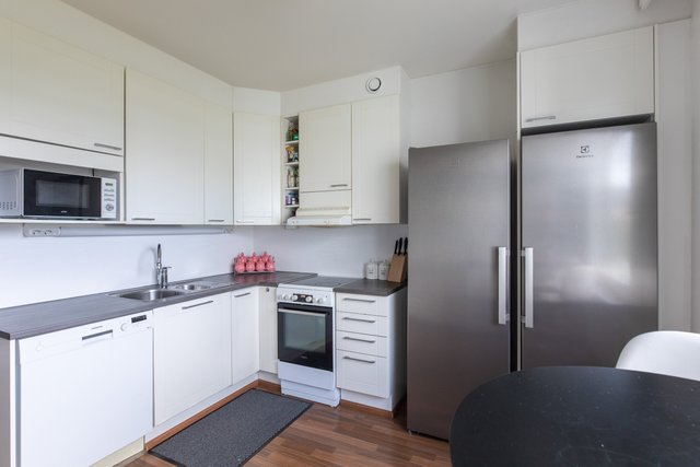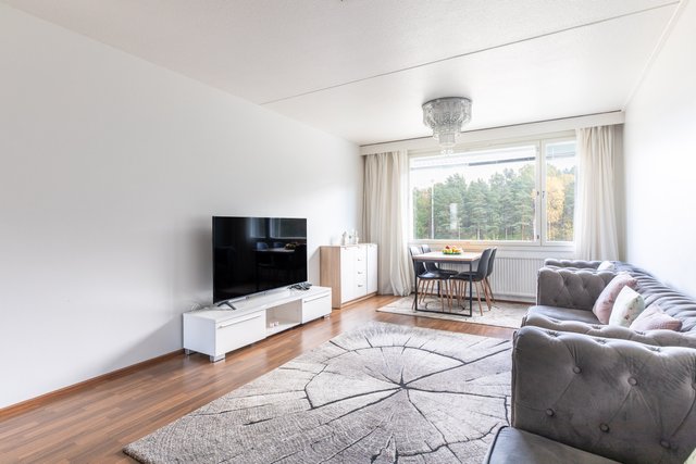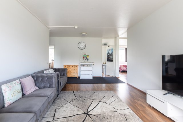 Myytävä huoneisto sijaitsee kolmannessa kerroksessa. Kyseessä on muuttovalmis läpitalon (itä-länsi) asunto, jonka pohjaratkaisu palvelee erinomaisesti erityisesti lapsiperhettä.