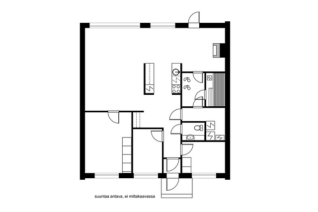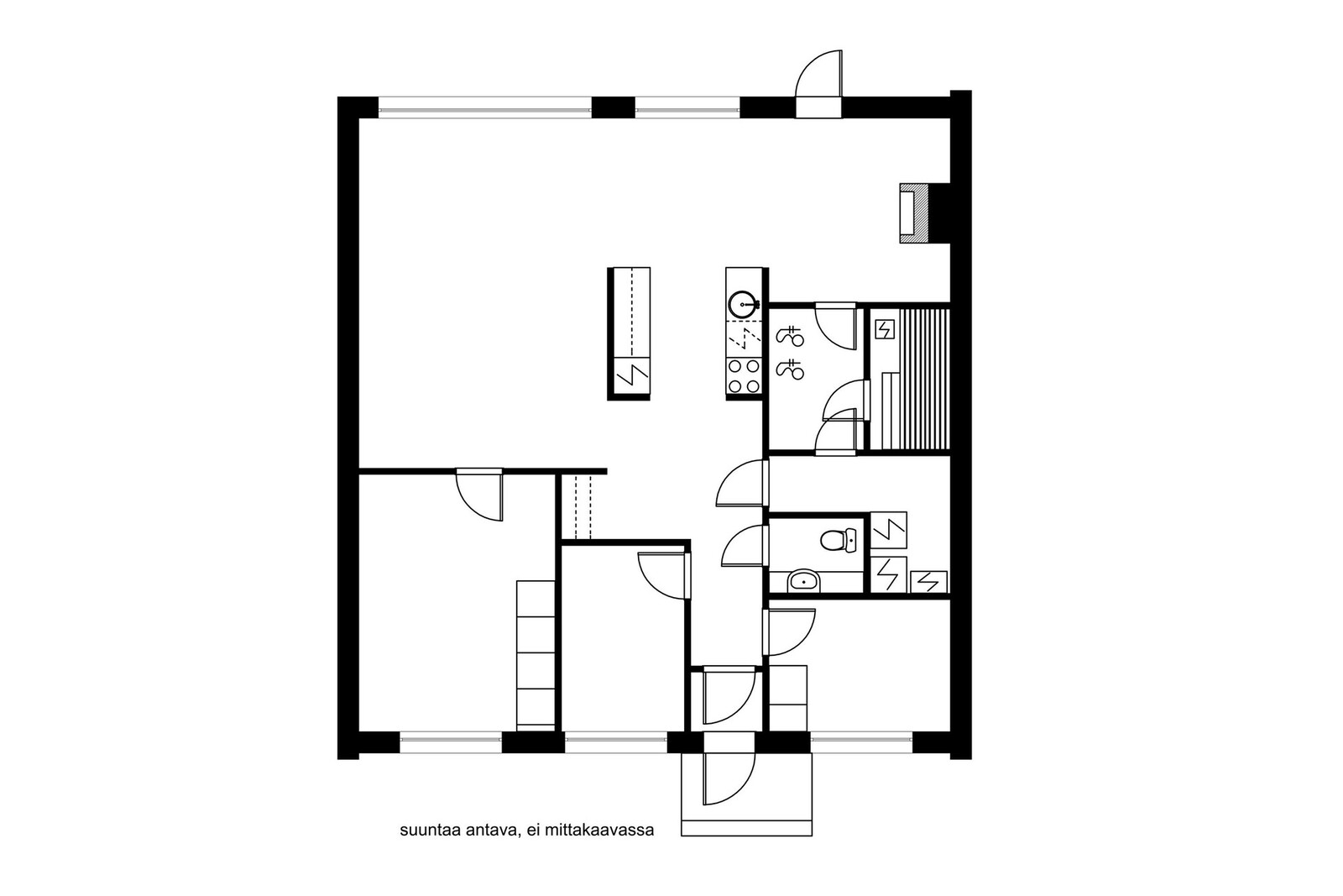Asunnon selkeä ja käytännöllinen pohjaratkaisu tarjoaa runsaasti mahdollisuuksia eri elämäntilanteisiin. Tilava olohuone toimii kodin sydämenä - suuret ikkunat tuovat tilaan runsaasti luonnonvaloa ja luovat avaran tunnelman.
