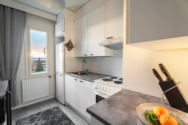 Tämä koti tarjoaa erinomaiset puitteet mukavaan asumiseen. Asunto sijaitsee ylimmässä kerroksessa, mikä takaa rauhallisuuden ja upeat näkymät etelään suuntautuvalta lasitetulta parvekkeelta.