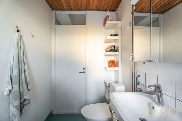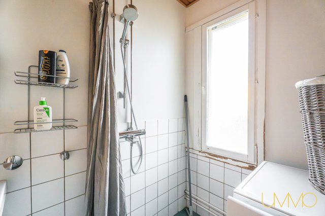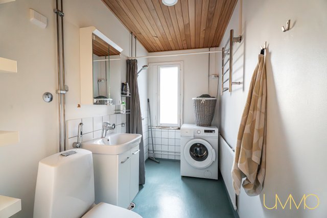 - Vaalea, tilava ja ikkunallinen kylpyhuone, jonka vesikalusteet on uusittu linjasaneerauksen yhteydessä noin vuonna 2020.
