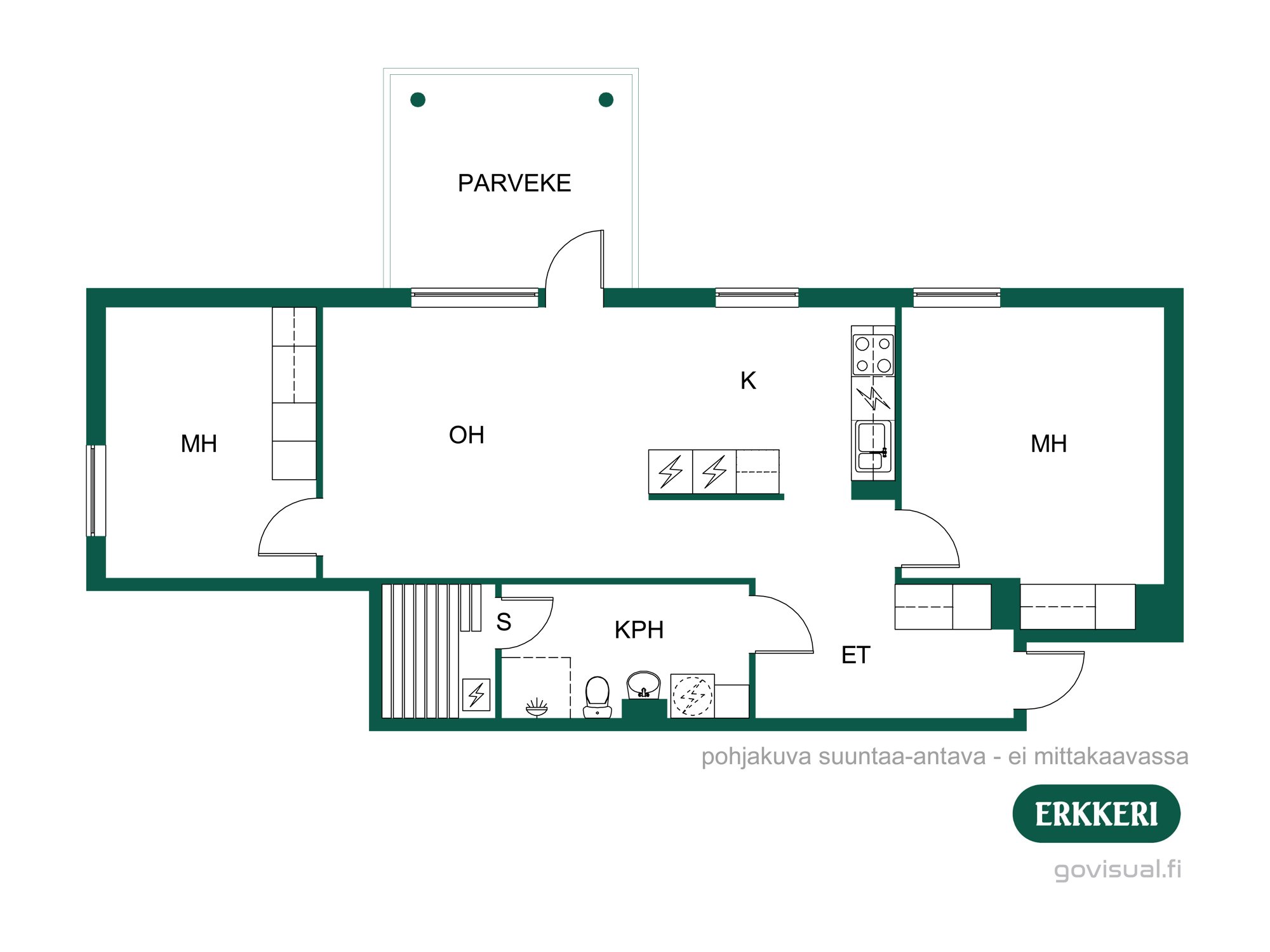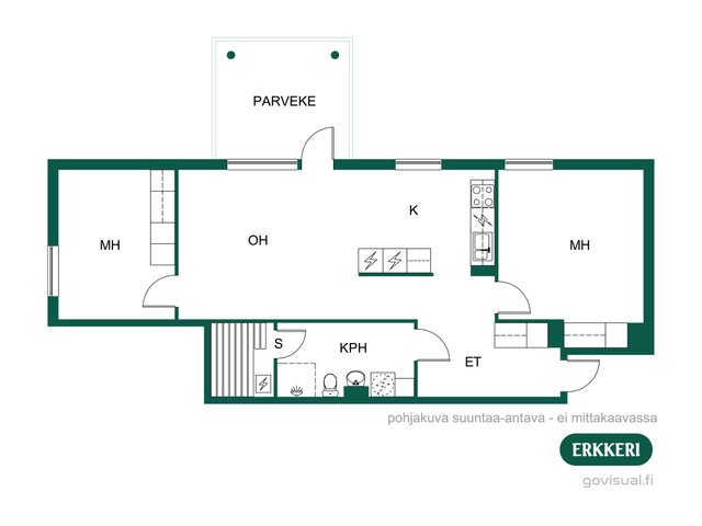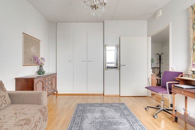 Tilava ja valoisa olohuone kutsuu viihtymään, ja sen yhteydessä oleva keittiö tekee tilasta kodin sydämen. Kaksi makuuhuonetta sijaitsevat huoneiston eri laidoilla – erinomainen ratkaisu, kun halutaan yksityisyyttä ja rauhaa. Tilava kylpyhuone, oma sauna sekä lasitettu parveke viimeistelevät asumismukavuuden.