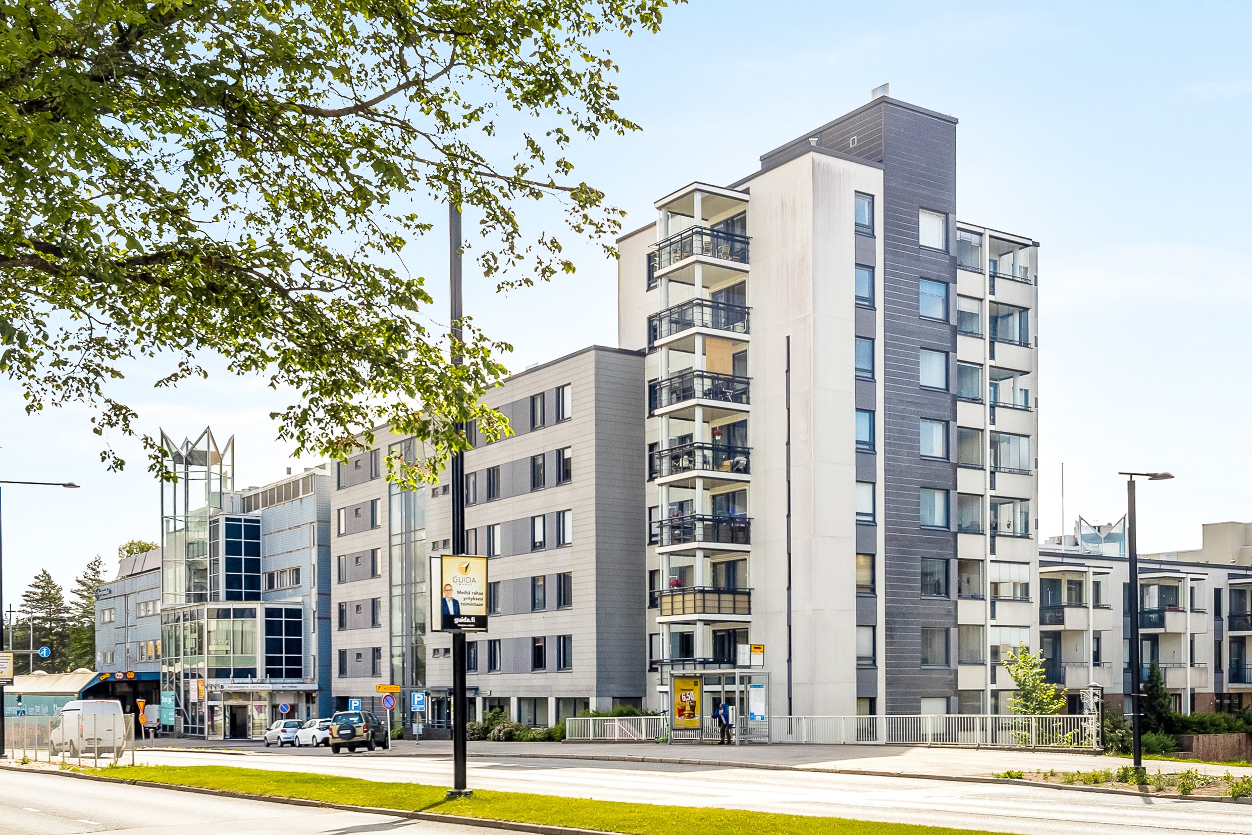 Tässä kodissa yhdistyvät valoisuus, viihtyisyys ja arjen toimivuus. Ylimmän kerroksen kulmahuoneisto tarjoaa avarat ja hienot näkymät, yksityisyyttä ja rauhallisen sijainnin – naapureita on vain alakerrassa ja yhden seinän takana.