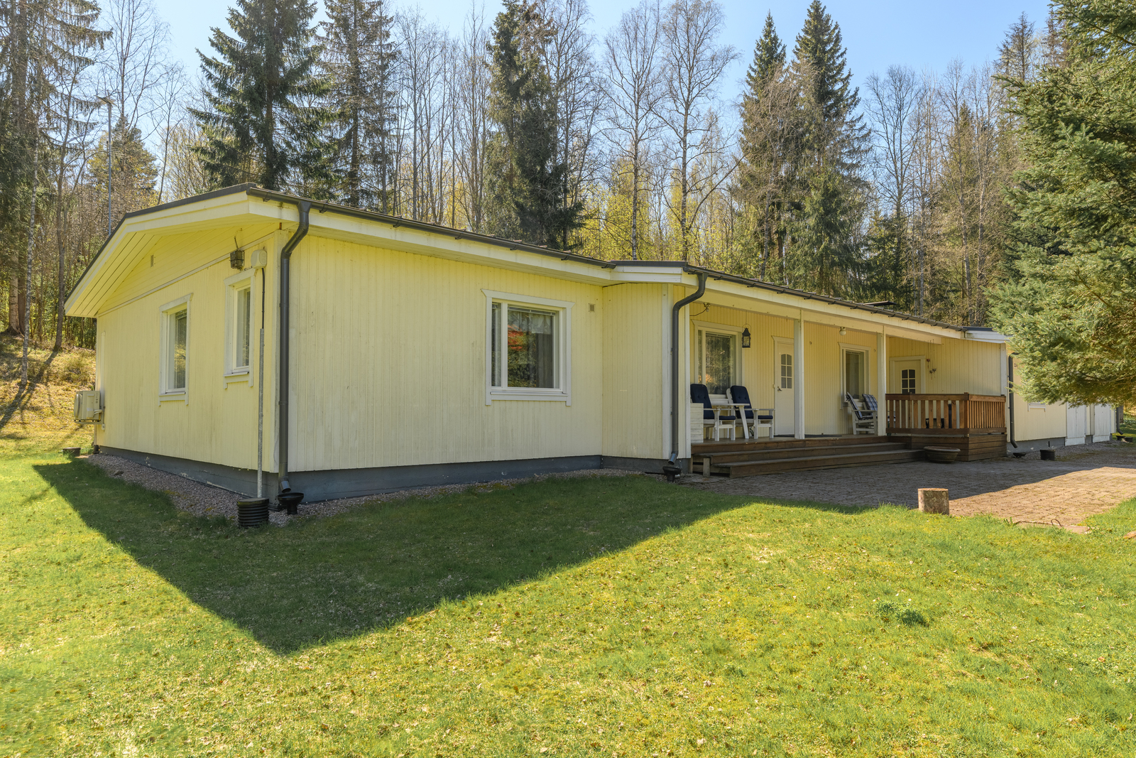 - Vehreää maisemaa ja metsää. Aurinkoinen tontti, koko päivän paistaa aurinko. Ilta aurinko takaterassille.