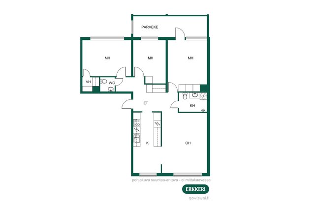 - Todella tilava terassiparveke länteen. Yhtiössä on päätetty, että osakkaat voivat asentaa ilmalämpöpumpun parvekkeelle halutessaan.